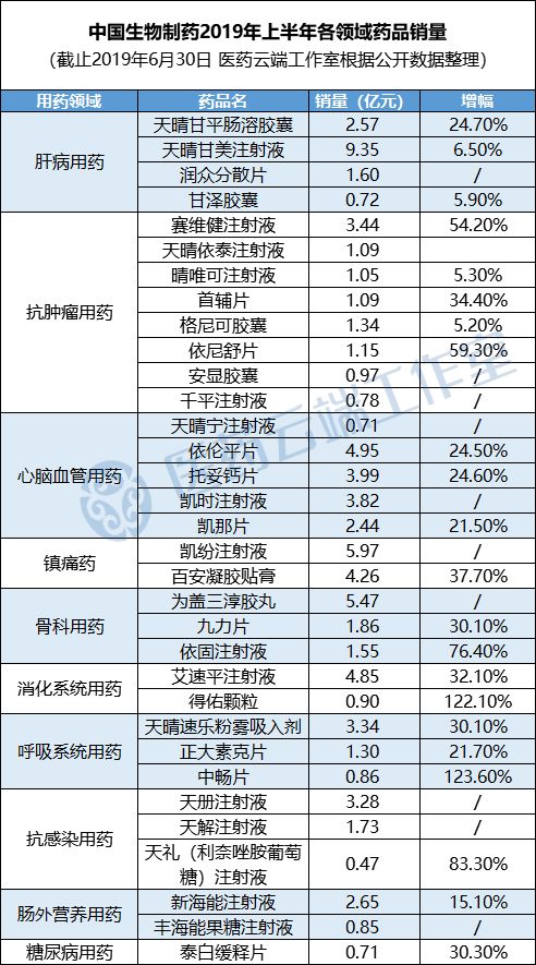 亿元,正大天晴的安罗替尼,2018年6月上市销售,年内7个月时间销售10亿元,据悉, 2019年上半年更是销售达