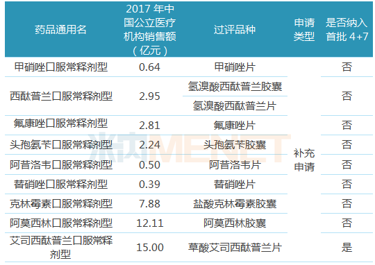 表8:四川汇宇制药过评品种