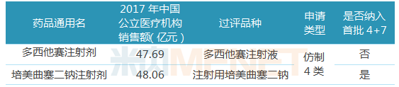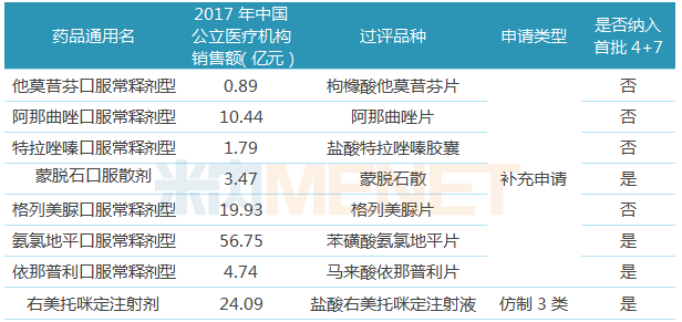 表3:江苏豪森药业过评品种