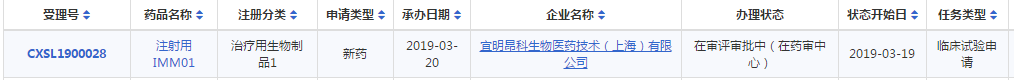 2019年3月20日,宜明昂科重新递交靶向CD47的融合蛋白药物IMM01的临床试验申请获得NMPA受理。