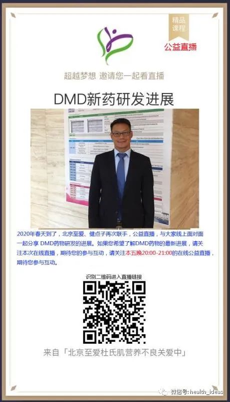 (小编注:健点子ihealth和至爱DMD中心将于明天4月3日,周五晚8-9点举行一个公益直播,介绍DMD新药的研发进展,欢迎届时参加。)