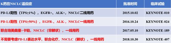 肺癌作为第一高发的肿瘤,巨大的市场下是PD-1抑制剂暗潮涌动的争斗。Keytruda拿下了一线鳞状NSCLC和非鳞状NSCLC,涵盖了80%左右的NSCLC患者,远远甩开了O药和罗氏的T药。同时在不考虑PD-L1表达的情况下,K药联合化疗都取得了临床突破。默沙东,依靠K药凭借在一线非小细胞肺癌、微卫星不稳定性(MSI-H)实体瘤的批准,肿瘤业绩一路高歌猛进,成为了肿瘤市场上炙手可热的巨头。2018年,K药营收71.71亿美元,成为了最畅销的PD-1抑制剂,增幅更是高达88%,不出意外的话,三年之内,K药将会取代来那度胺成为肿瘤药物的魁首。