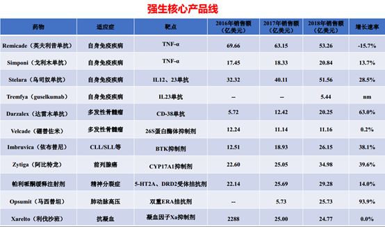 强生2018年制药业务板块营收407.34亿美元,同比增长12.4%,创下了近几年新高。一方面是自身免疫、肿瘤新上市的药物交出了满意答卷;另一方面是由于2017年300亿美元收购罕见病药物公司Actelion,进一步扩展了自己的产品管线。