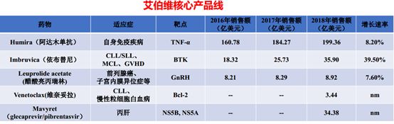 重金收购拿下了依布替尼美国的市场享有权,18年拿下了35.9亿美元的佳绩;和罗氏公司共同研发了Bcl-2抑制剂维奈妥拉,让其成为血液瘤市场上不容小觑的存在。