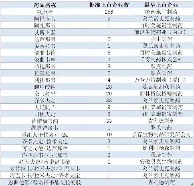 据统计,目前全球已上市60余款抗艾滋病药物及多个复方制剂。在中国,已上市26款。
