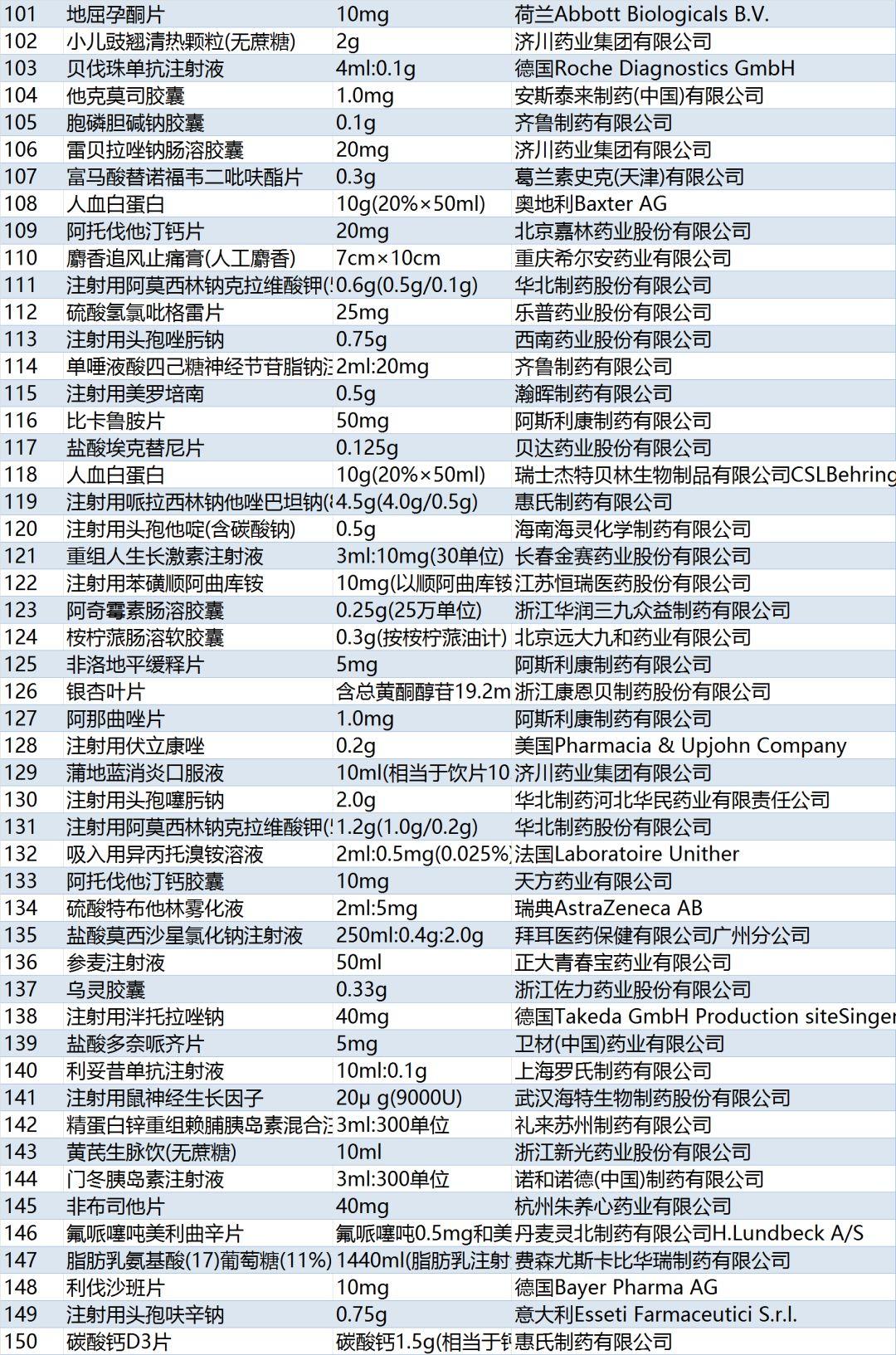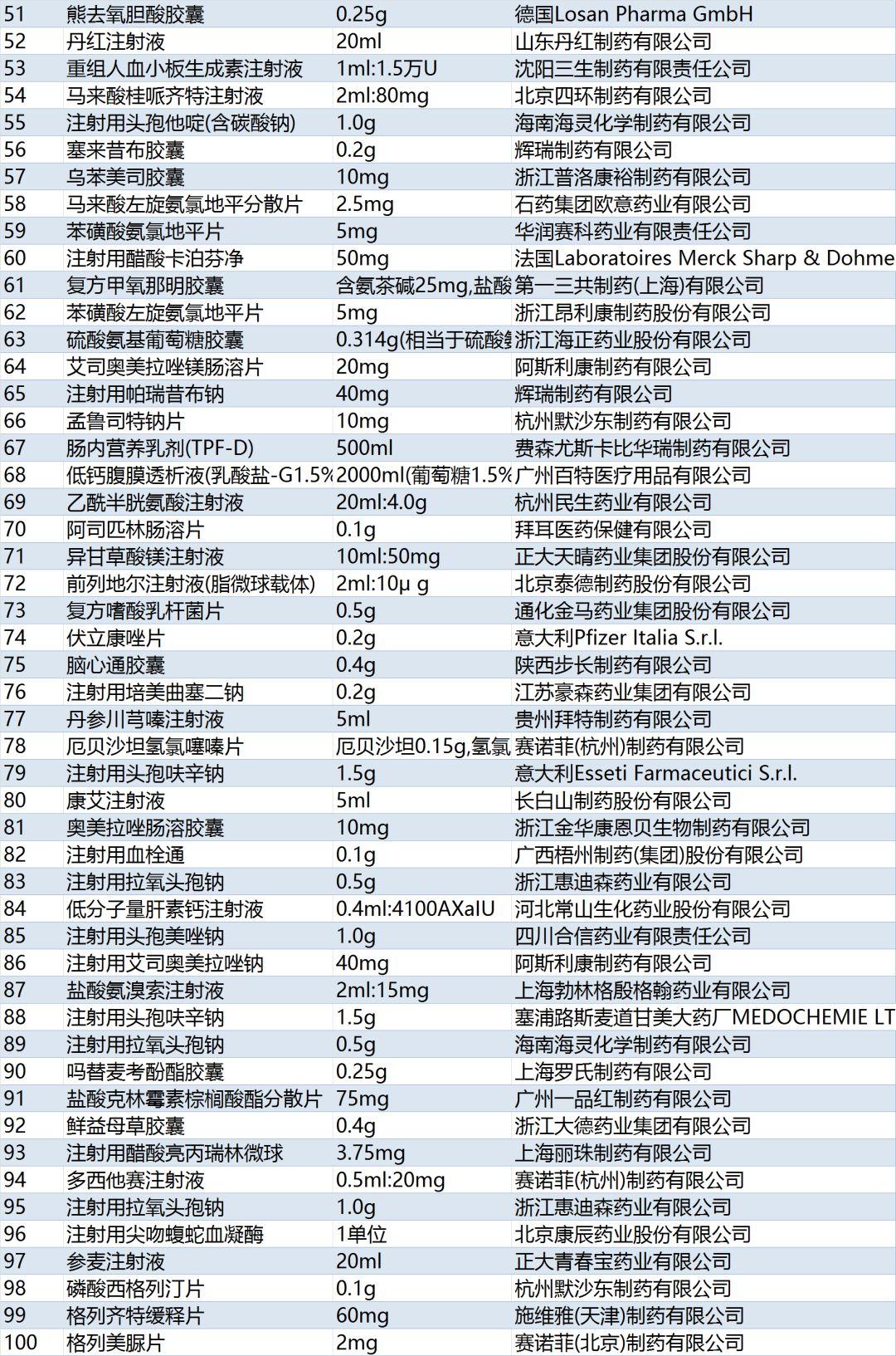 还有赛诺菲的硫酸氢氯吡格雷片、拜耳的阿卡波糖片、罗氏的曲妥珠单抗、诺华的缬沙坦胶囊等均在排行榜前20位。