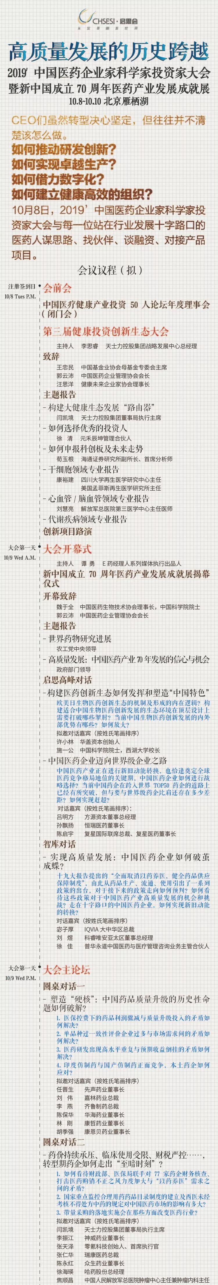 第十一届中国医药企业家科学家投资家大会暨新中国70周年医药产业发展成就展将于2019年10月8日正式盛大启幕。