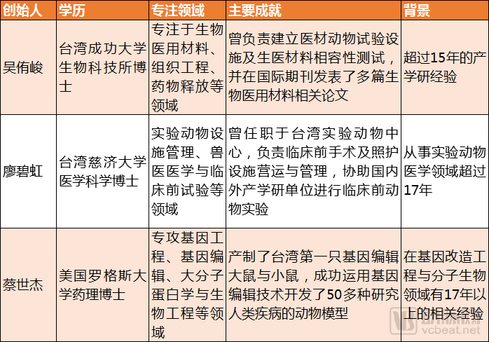 吴侑峻、廖碧虹与蔡世杰三位博士,分别在生医材料开发、兽医医学与基因工程等领域超过十多年以上的研究与开发经验。