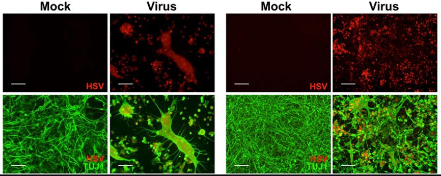 近期,《科学进展》杂志上发表了一项新的研究成果,科学家们发现,在人类诱导神经干细胞(hiNSC)构成的3D大脑模型中,1型单纯疱疹病毒(HSV-1)感染竟然能够在完全没有其他因素参与的情况下,诱导淀粉样蛋白沉淀形成、神经胶质增生、神经炎症和神经功能下降——也就是阿尔茨海默病的标志性病理变化![1]