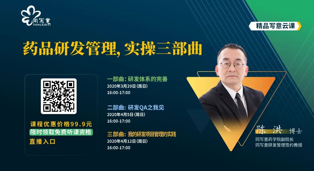 “写意云课”是同写意2020年1月新冠肺炎疫情期间重磅推出的线上直播平台。融合了同写意创办16年来举办上百期线下论坛的厚重积淀,目前已推出20余期,累计观看人数达到5万余人。汇集国内一流研发、临床、法规、学术界专家,领航中国新药,赋能创新发展。