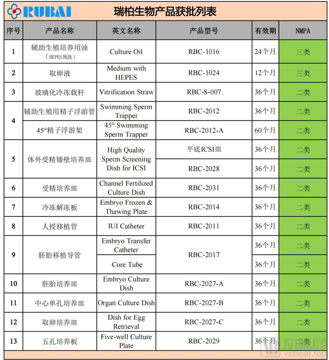 为了推进辅助生殖医疗器械国产化的进程,瑞柏生物作为业内第一梯队的企业,正加速20余种产品的NMPA注册,现已经完成了13款辅助生殖医疗器械产品的NMPA注册认证(11款Ⅱ类医疗器械和2款Ⅲ类医疗器械)。